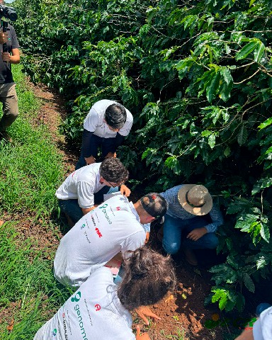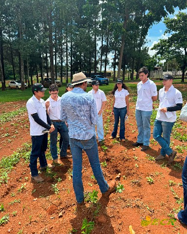Em seguida, o grupo participou de uma aula ministrada pelo agrônomo Guilherme, que compartilhou seu profundo conhecimento sobre o plantio e a colheita de café. Durante a explanação, Guilherme abordou as melhores práticas para o manejo do cafezal, desde a implementação inicial até os cuidados com as mudas e condução dos pés de café. Os alunos destacaram a riqueza das informações e a relevância de aplicar práticas sustentáveis e adequadas para a produção cafeeira.
